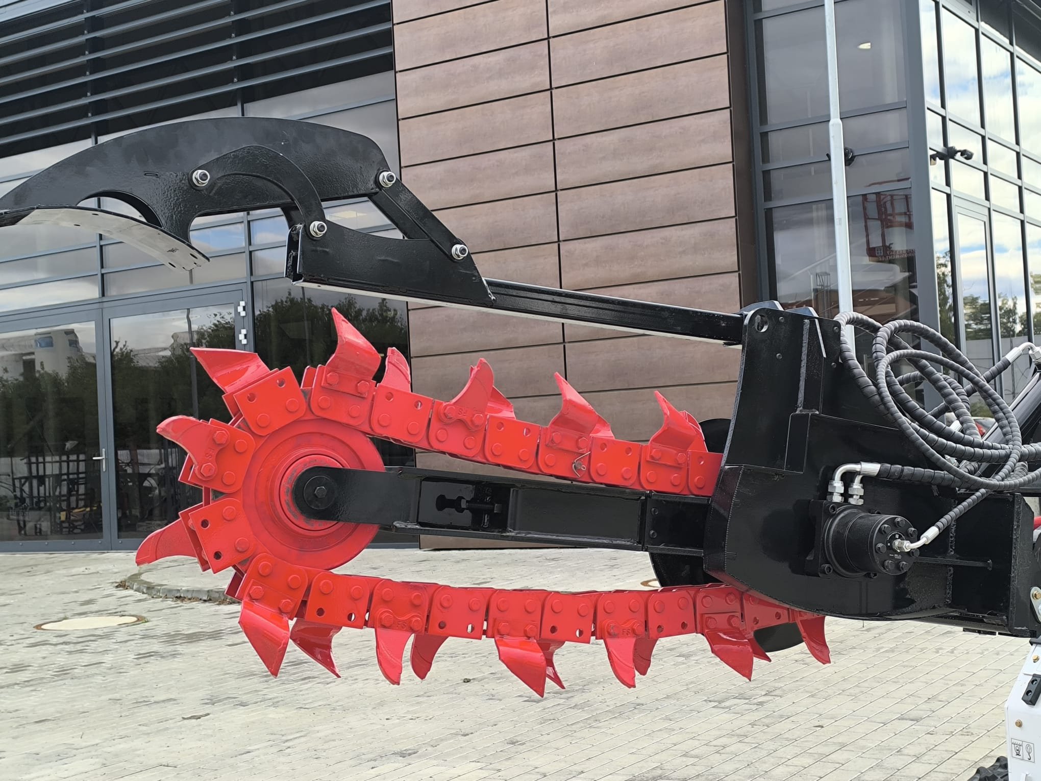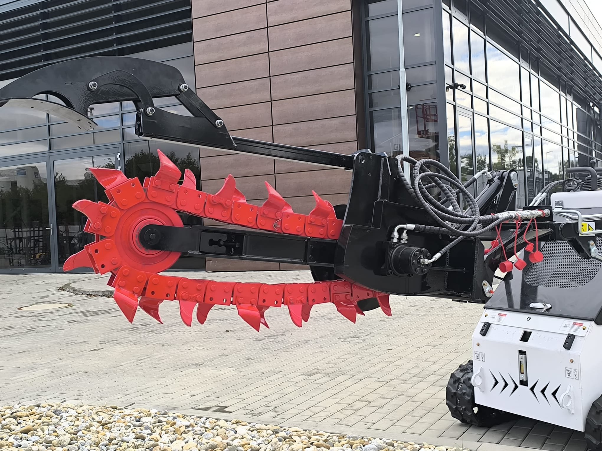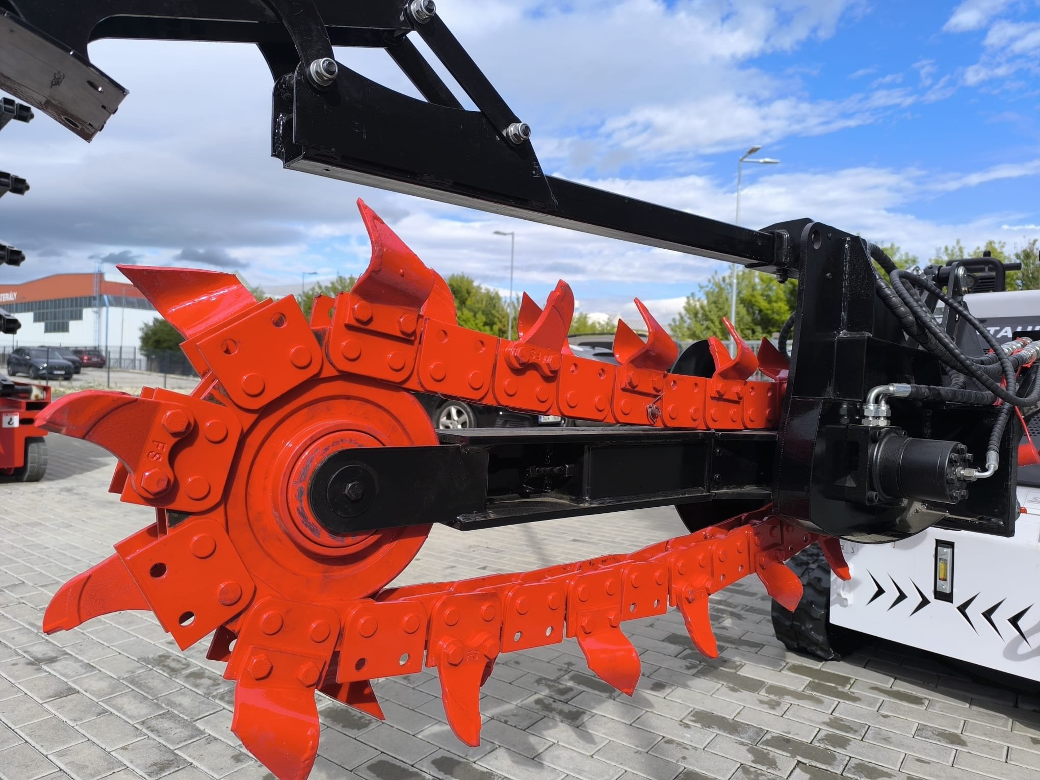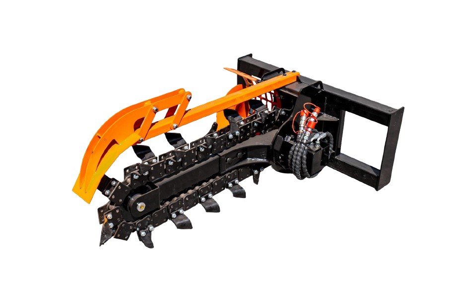 Rýhovačka pro smykový nakladač Tauros N382-T je výkonné hydraulické příslušenství určené pro rychlé a přesné výkopové práce. Vhodná pro instalaci inženýrských sítí, pokládku kabelů, závlahových systémů, drenáží nebo základů plotů. Díky pevné konstrukci, pohonu hydraulickým motorem a efektivnímu řetězovému systému je ideální volbou pro profesionály ve stavebnictví, technických službách nebo zemědělství.